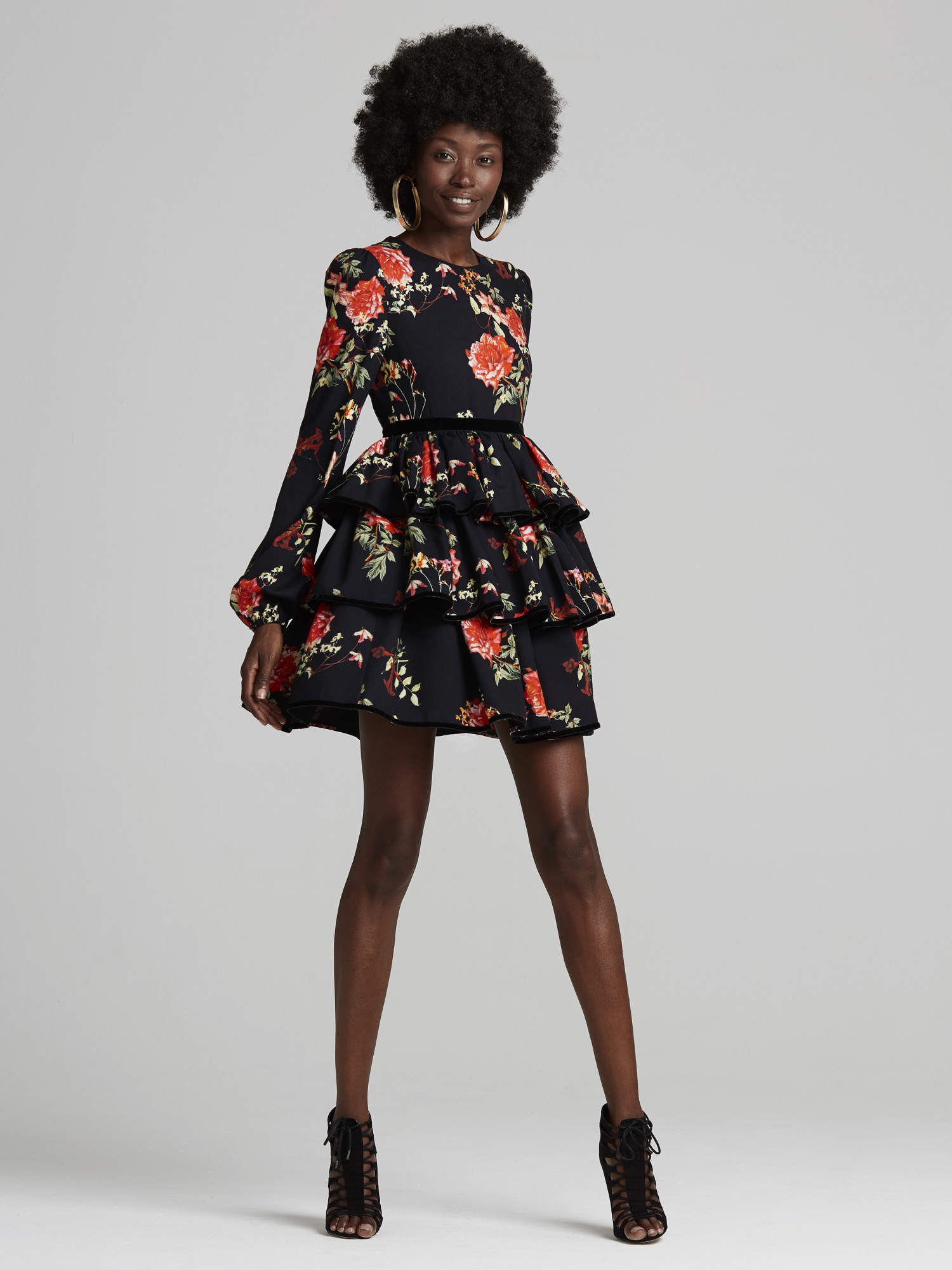 Mini floral print volant dress.