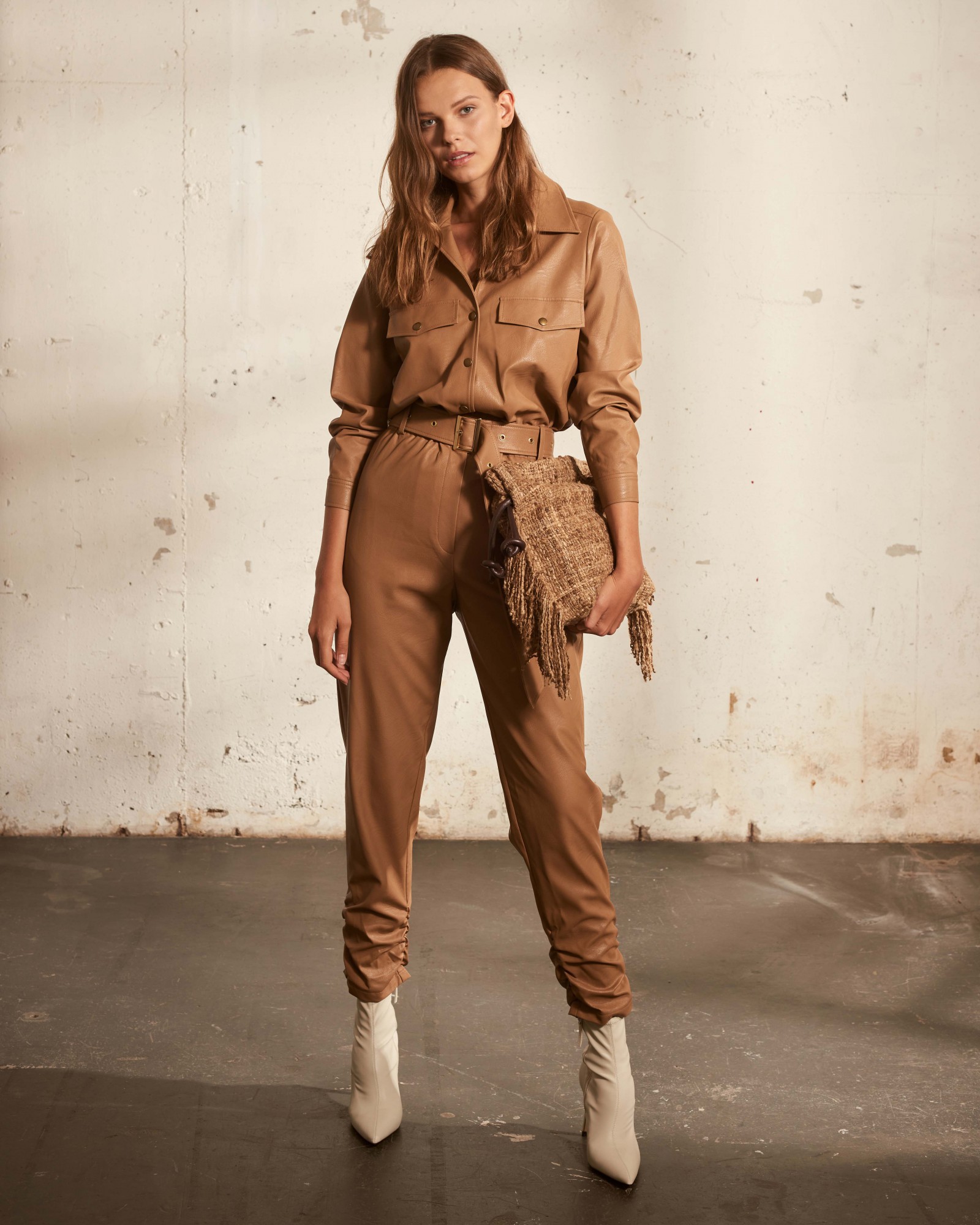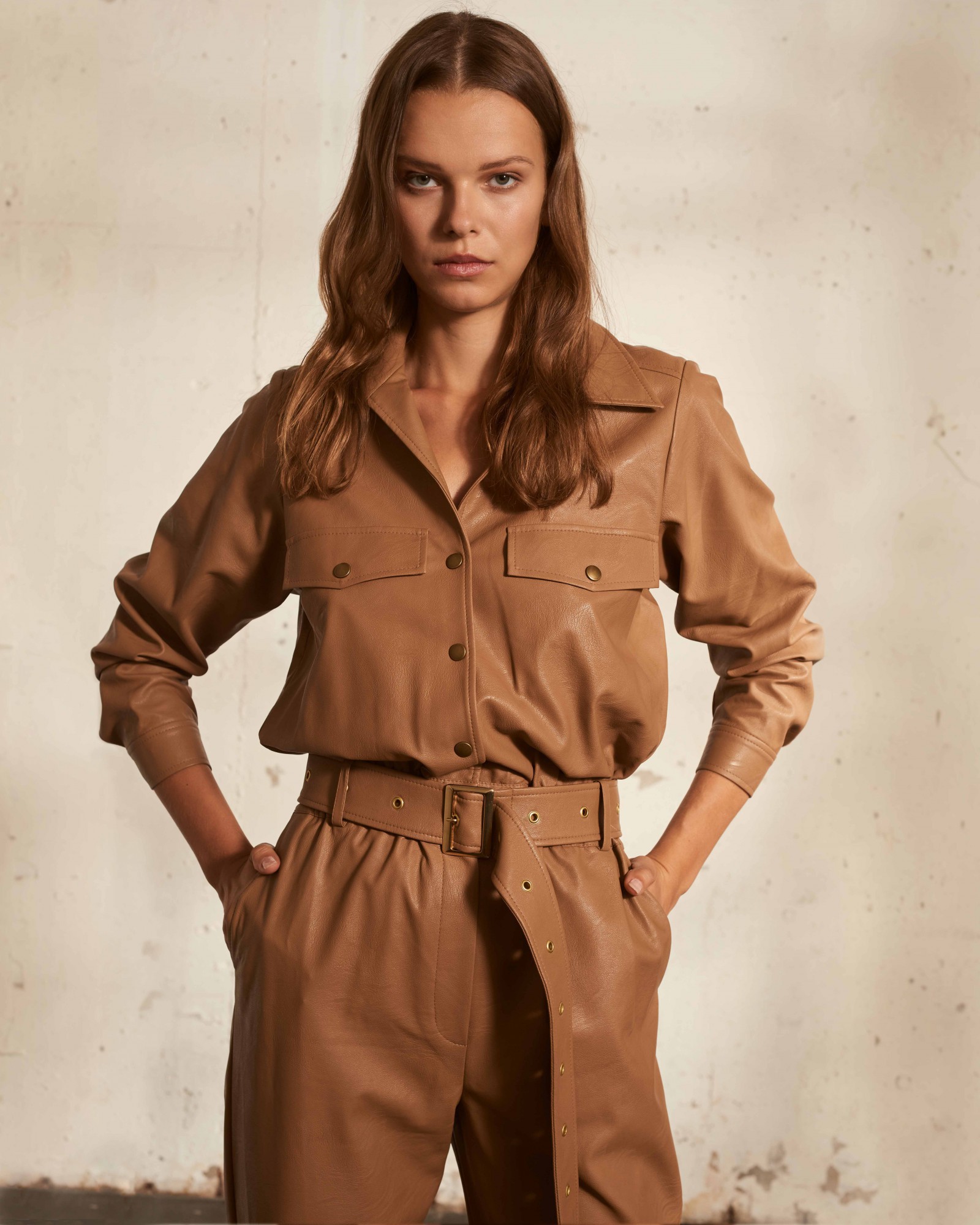 Dimitri's jumpsuit is made from vegan leather that's just as soft as the real thing. Cut in a contemporary boiler shape, it has chest pockets and a matching belt to cinch the waist. Wear yours solo or layered over a turtleneck.