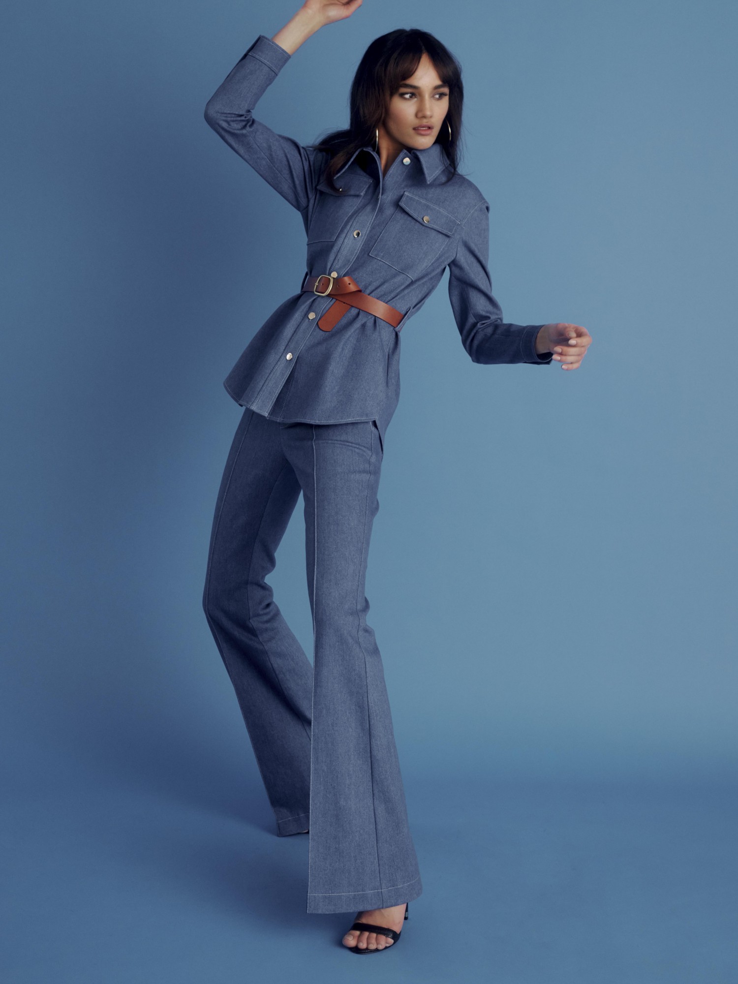 Dimitri's pants really strike a harmony between elegance and comfort. They've been made in Italy from stretch-denim, so they drape effortlessly, high-rise waist and slim legs that flare gently at the hems.