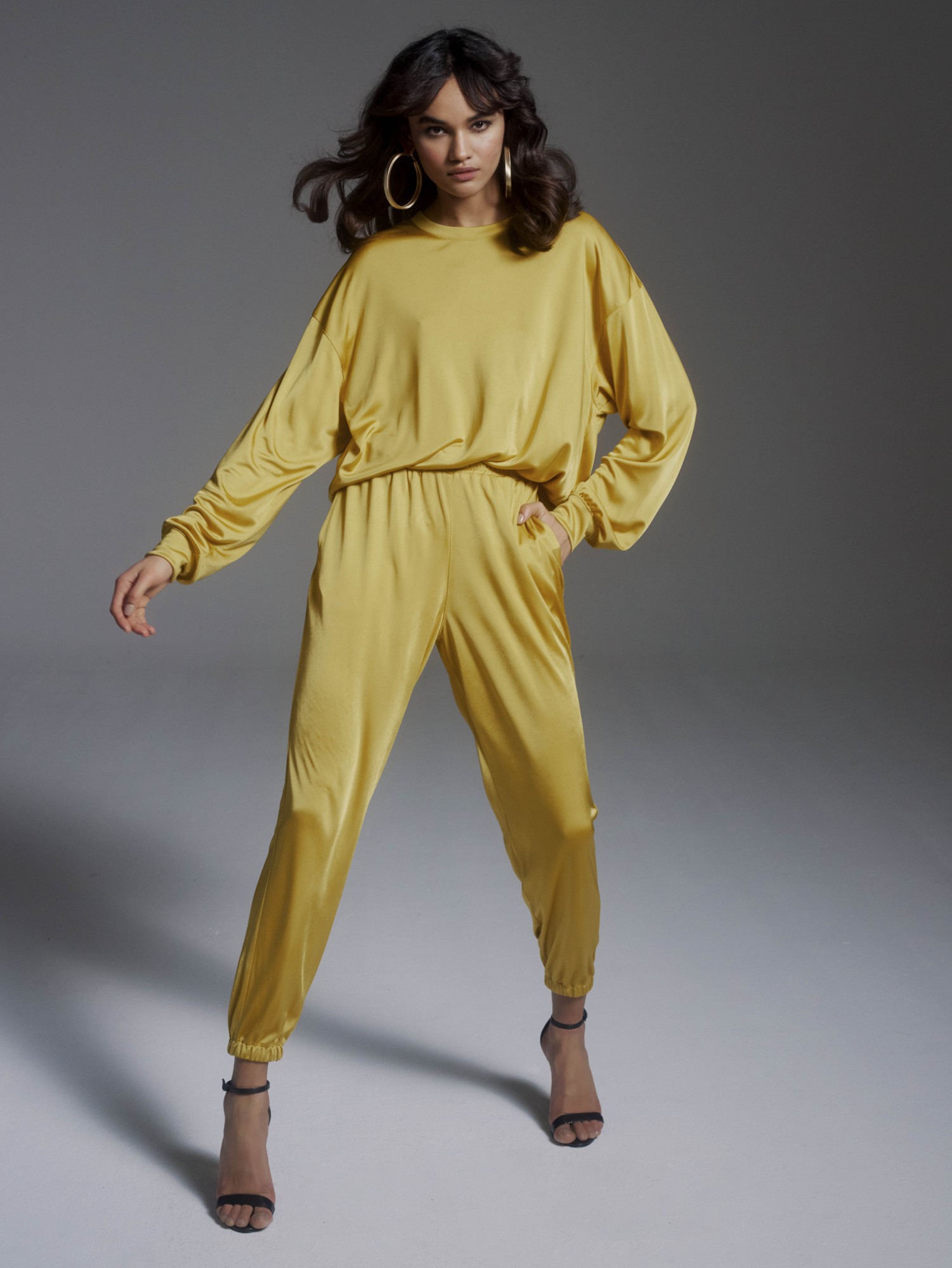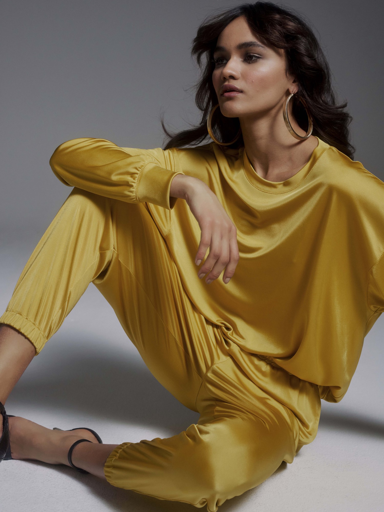 Dimitri's track pants are made from silk-jersey and perfect for lounging in and will look cool outside the house. This tapered pair has elasticated cuffs and waistband. Complete the set with the matching sweater and wear your's with heels or boots.