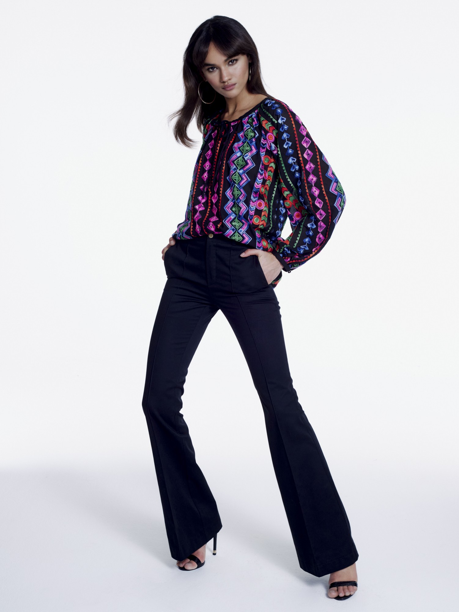 Dimitri's blouse is decorated with vibrant, retro embroideries - wear it with jeans or a skirt to create the perfect summer look. Cut for a loose fit and is accentuated by subtly puffed sleeves.