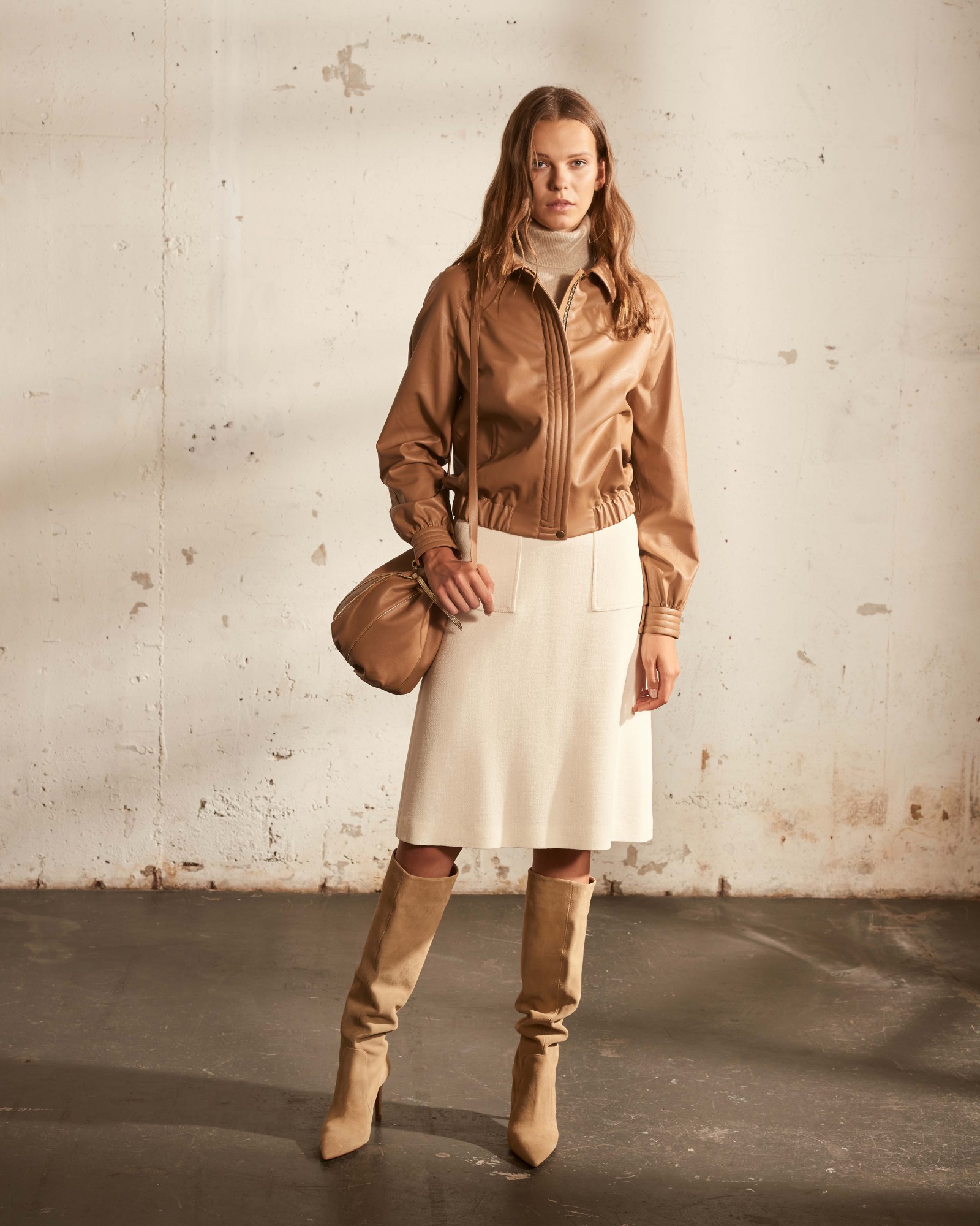 Dimitri adds his own personal twist to classic pieces and the results are always so cool. Cut in a traditional bomber silhouette, this jacket is made from faux leather and detailed with stitches along the collar, front and hem. The relaxed shape will sit perfectly over an A-line skirt.