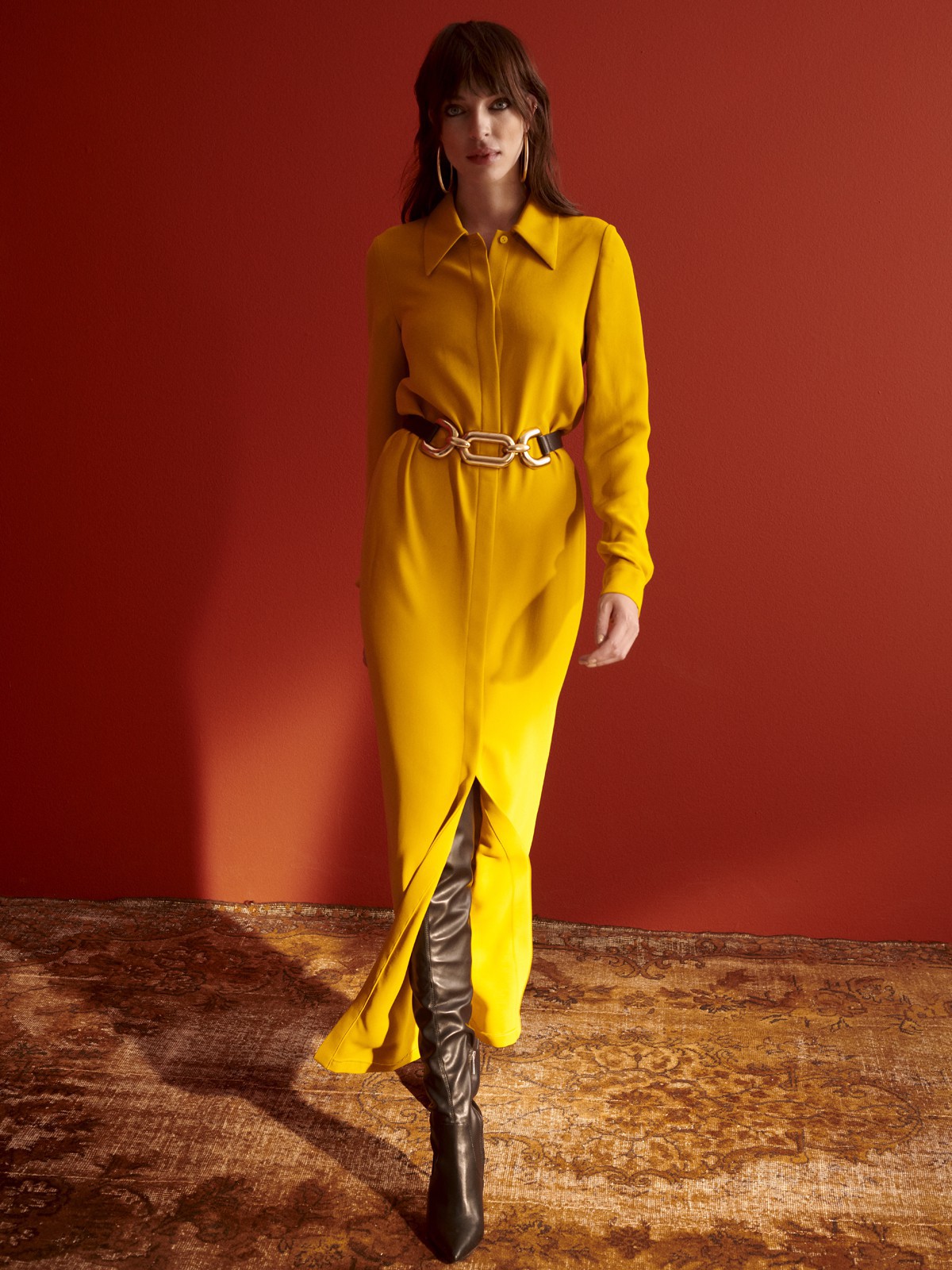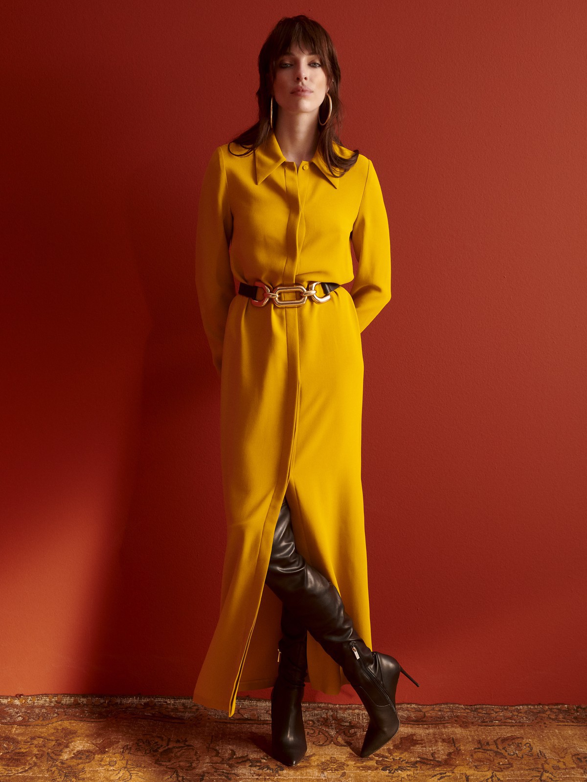 Dimitri's maxi dress is cut from lightweight fabric. It's designed in a shirting-inspired silhouette in a loose shape. Undo a few buttons along the neckline and maxi hem for a more relaxed feel. Wear yours with knee boots.