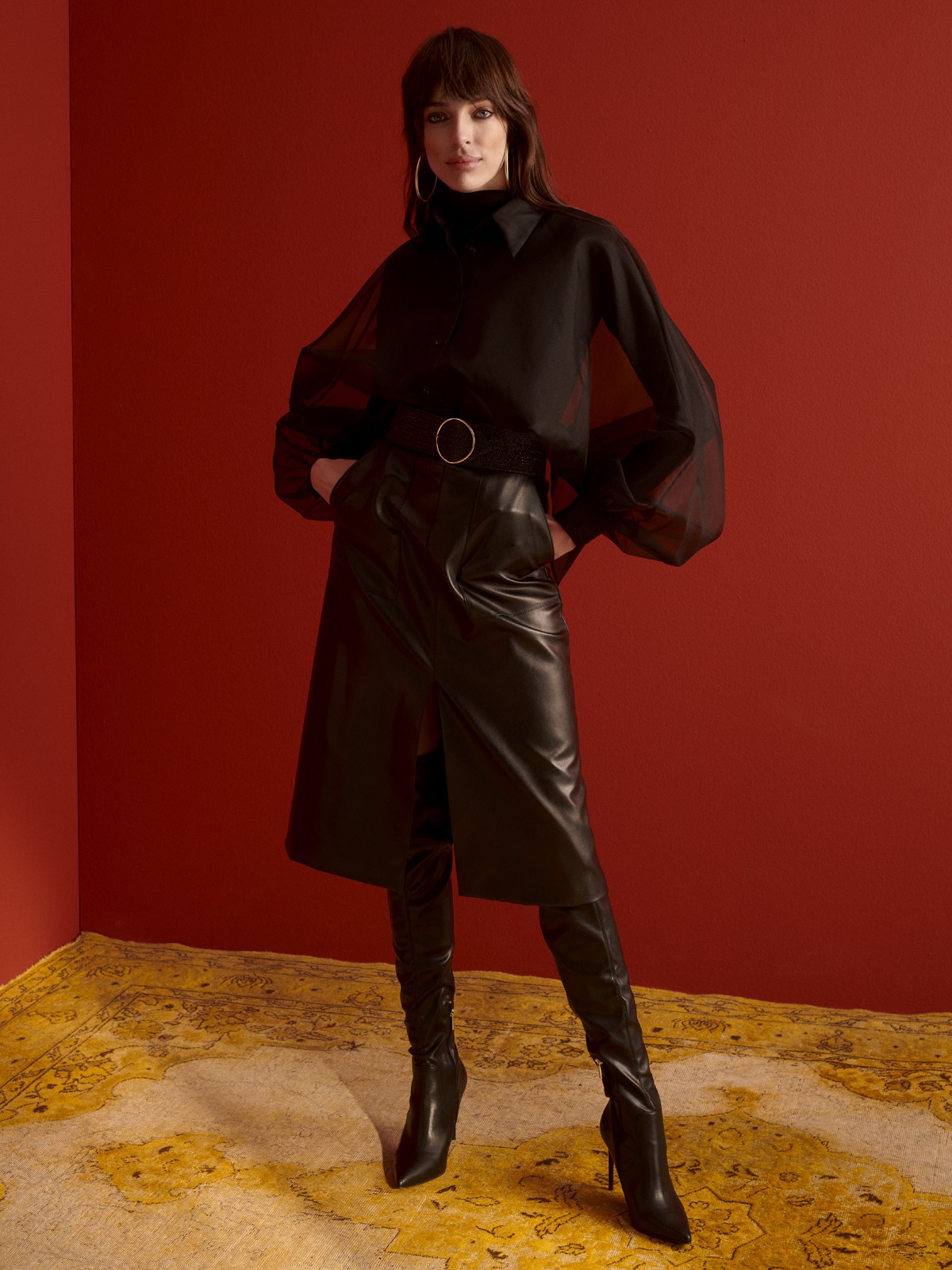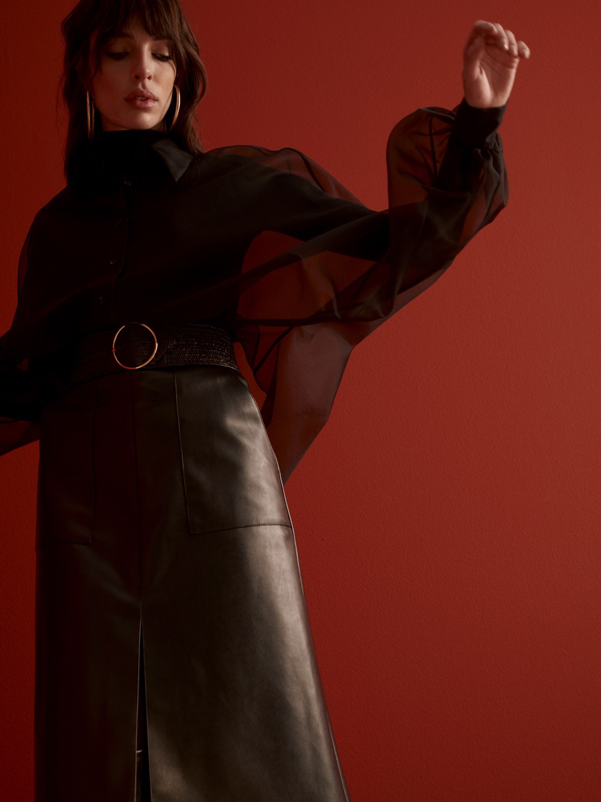 Dimitri's blouse is a timeless, versatile piece that you'll get plenty of wear out of. It's made from lightweight organza in Italy and the stylish look is oversized. Refined details on sleeves and cuffs. It has lustrous buttons along the front and you can wear it half-tucked into everything from jeans to tailored pants or skirts!