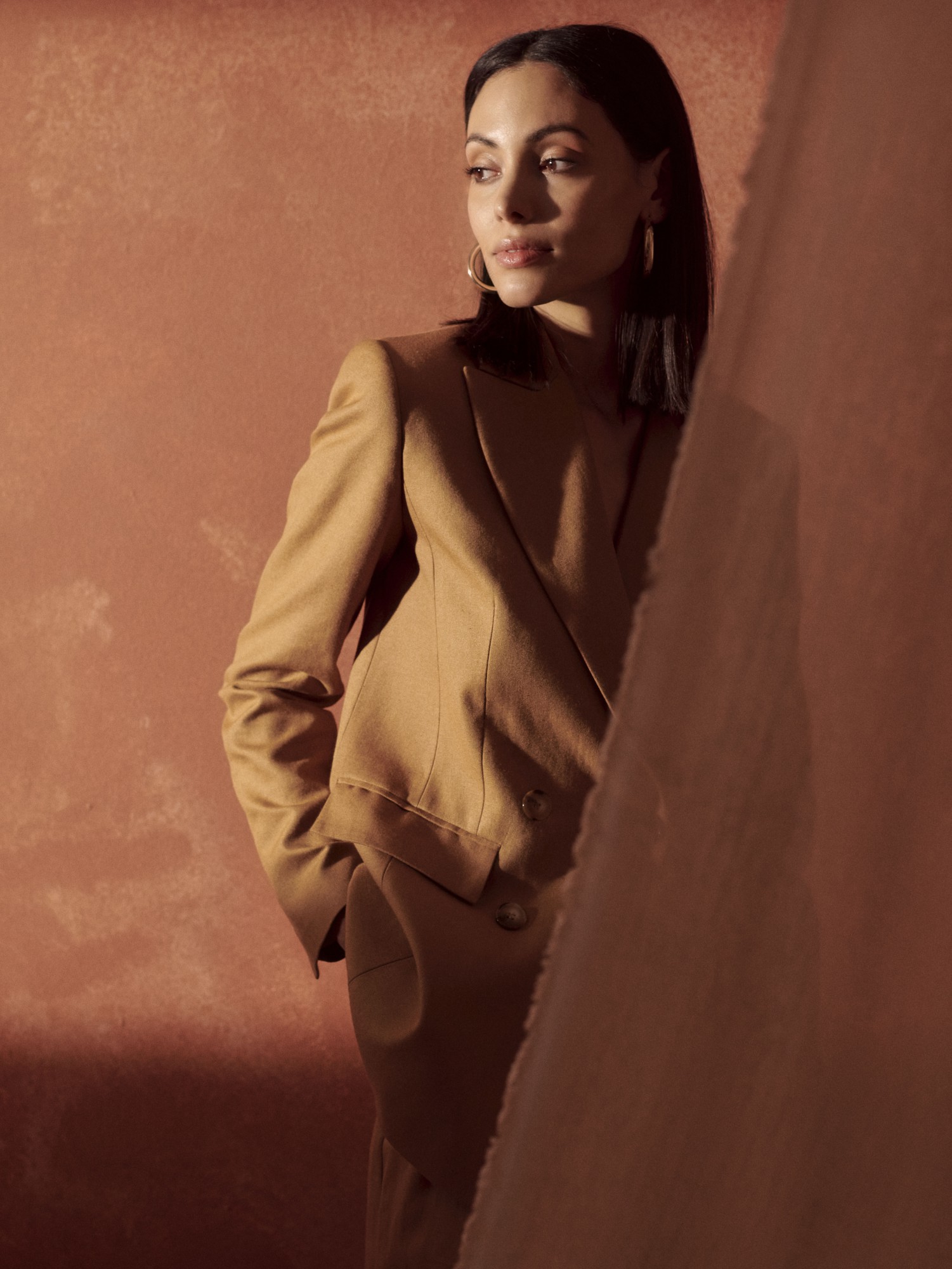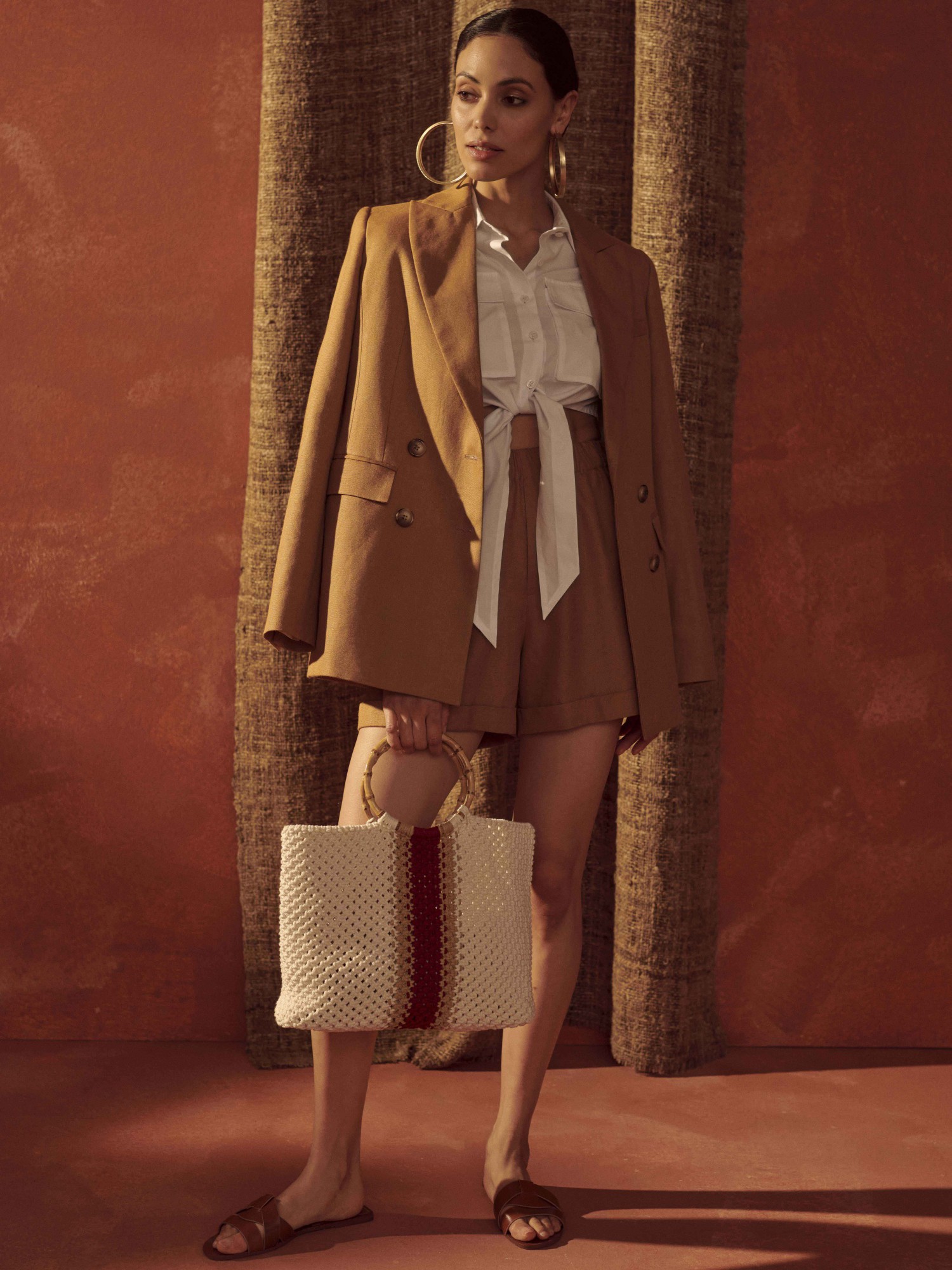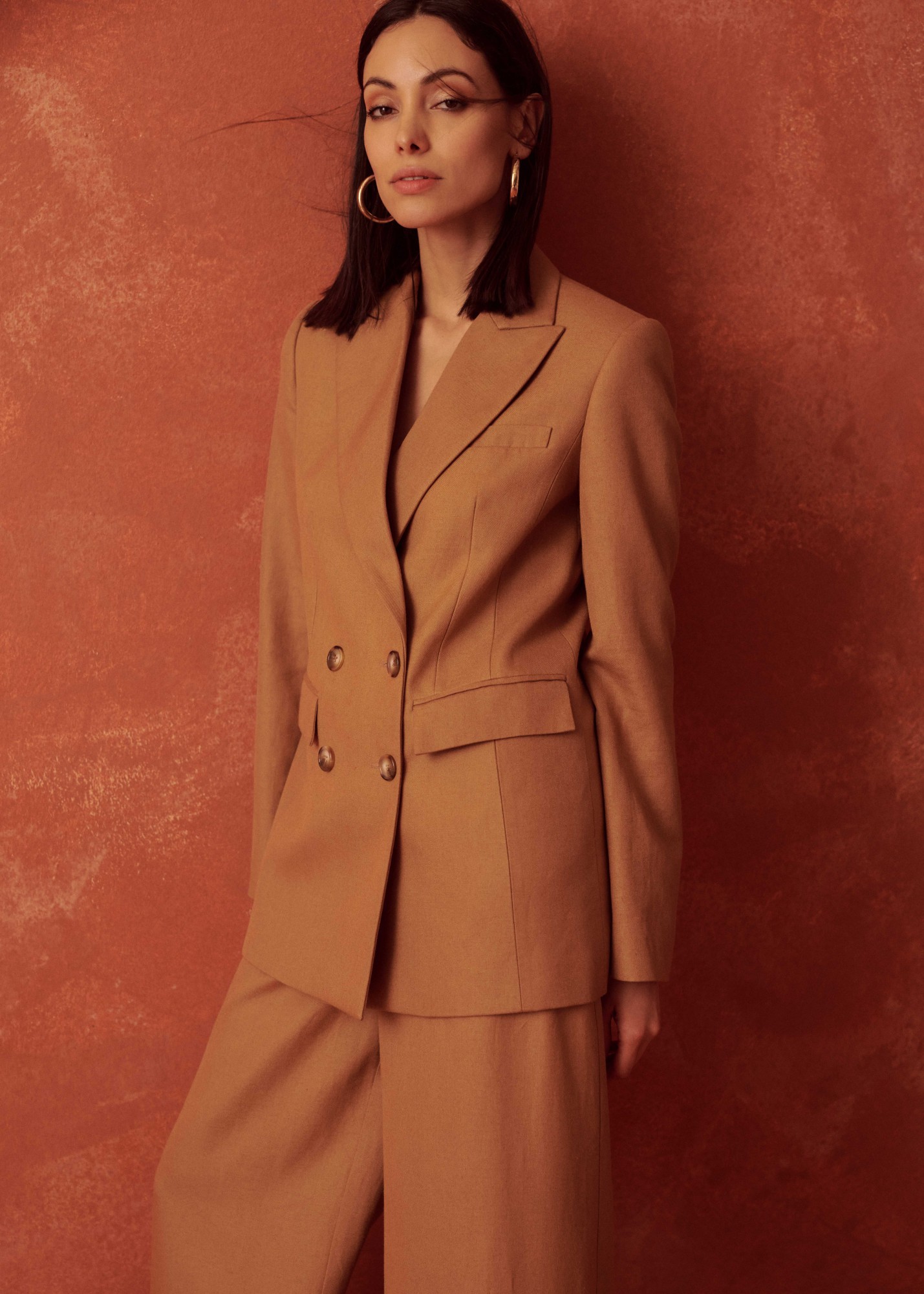 Dimitri believes in the power of a good blazer. This double breasted style has been made in Italy from a lightweight Linen-Mix. It's designed in a slightly loose silhouette with padded shoulders pockets and golden buttons. Take a cue from the brand and wear it with a short or as a suit.