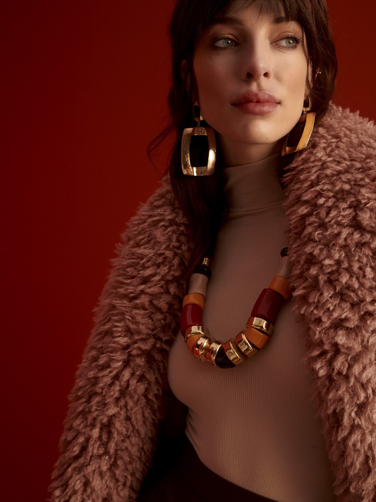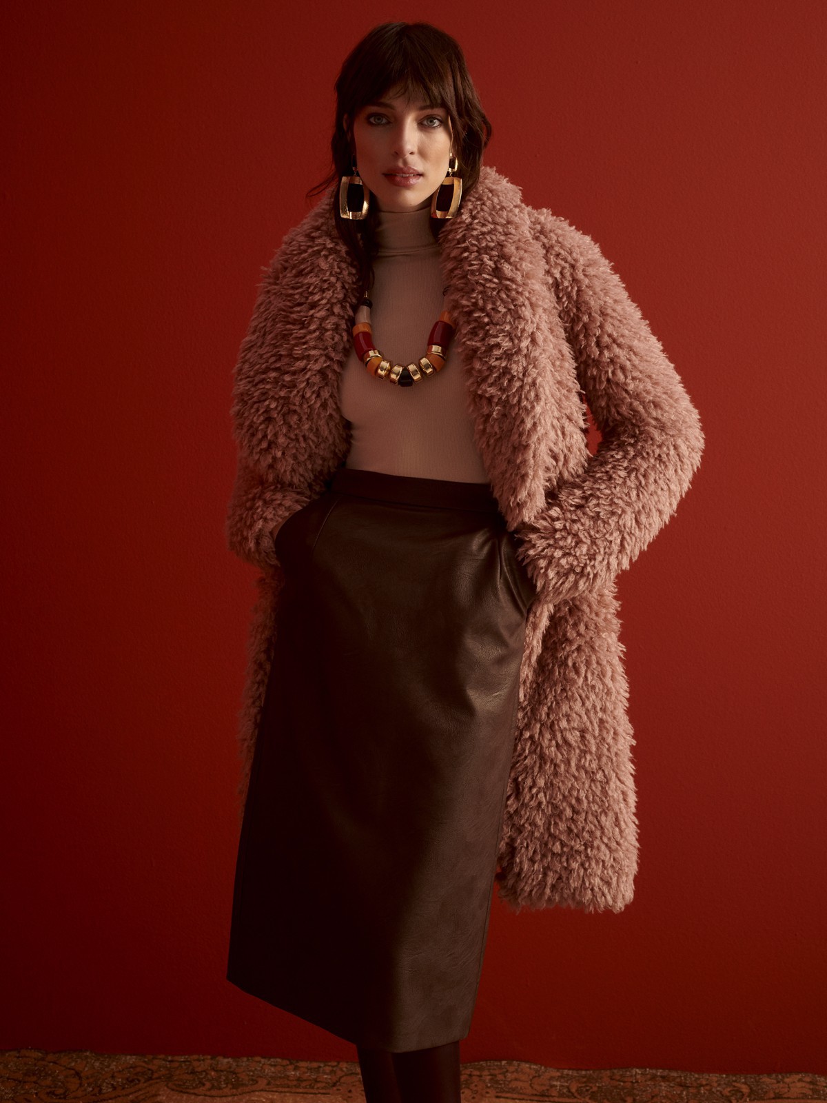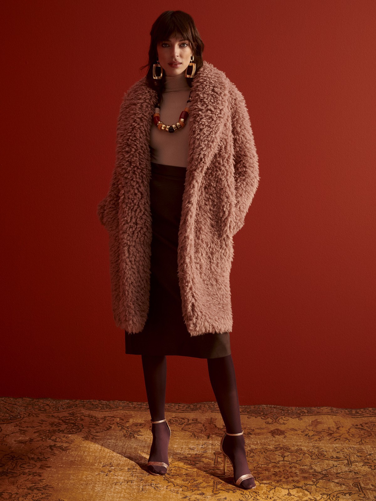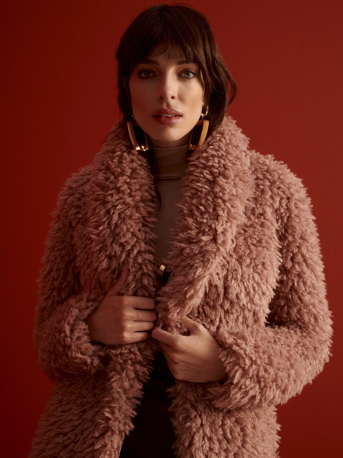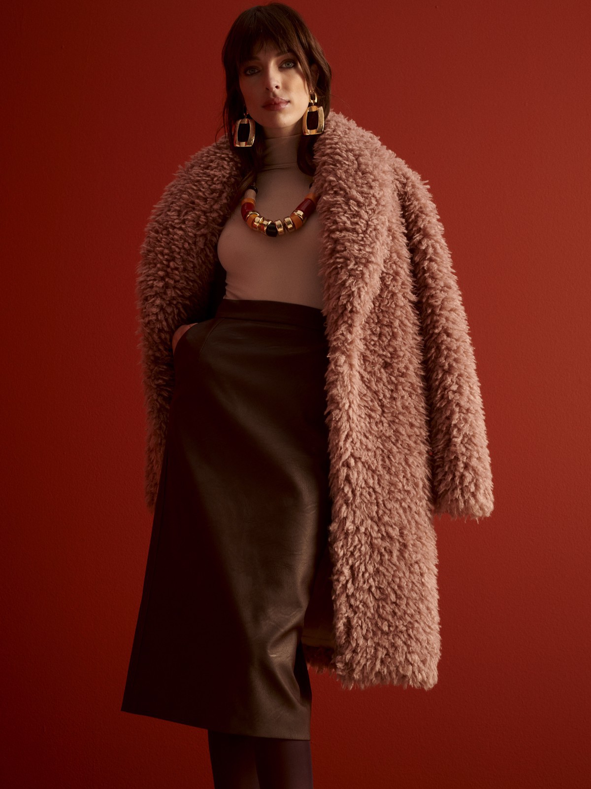Dimitri's coat puts shearling center stage. The irresistible 'Blush' color is quintessential to the Italian maison and goes with almost everything. It has a slightly loose, longline silhouette that layers nicely over chunky sweaters or midi dresses and has a shawl collar.