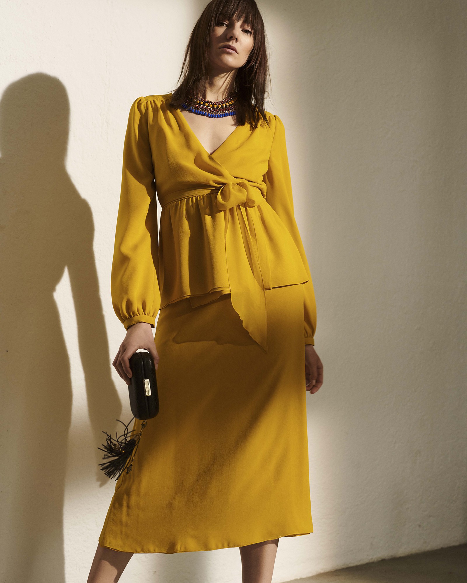 Dimitri's spirited collections are nothing but a joy to wear. Made by local artisans in the designer's native Italy, this wrap top is cut from breathable silk-chiffon and has puffed sleeves. Wear yours with the matching midi skirt to rooftop bars or beach-side dinners.
